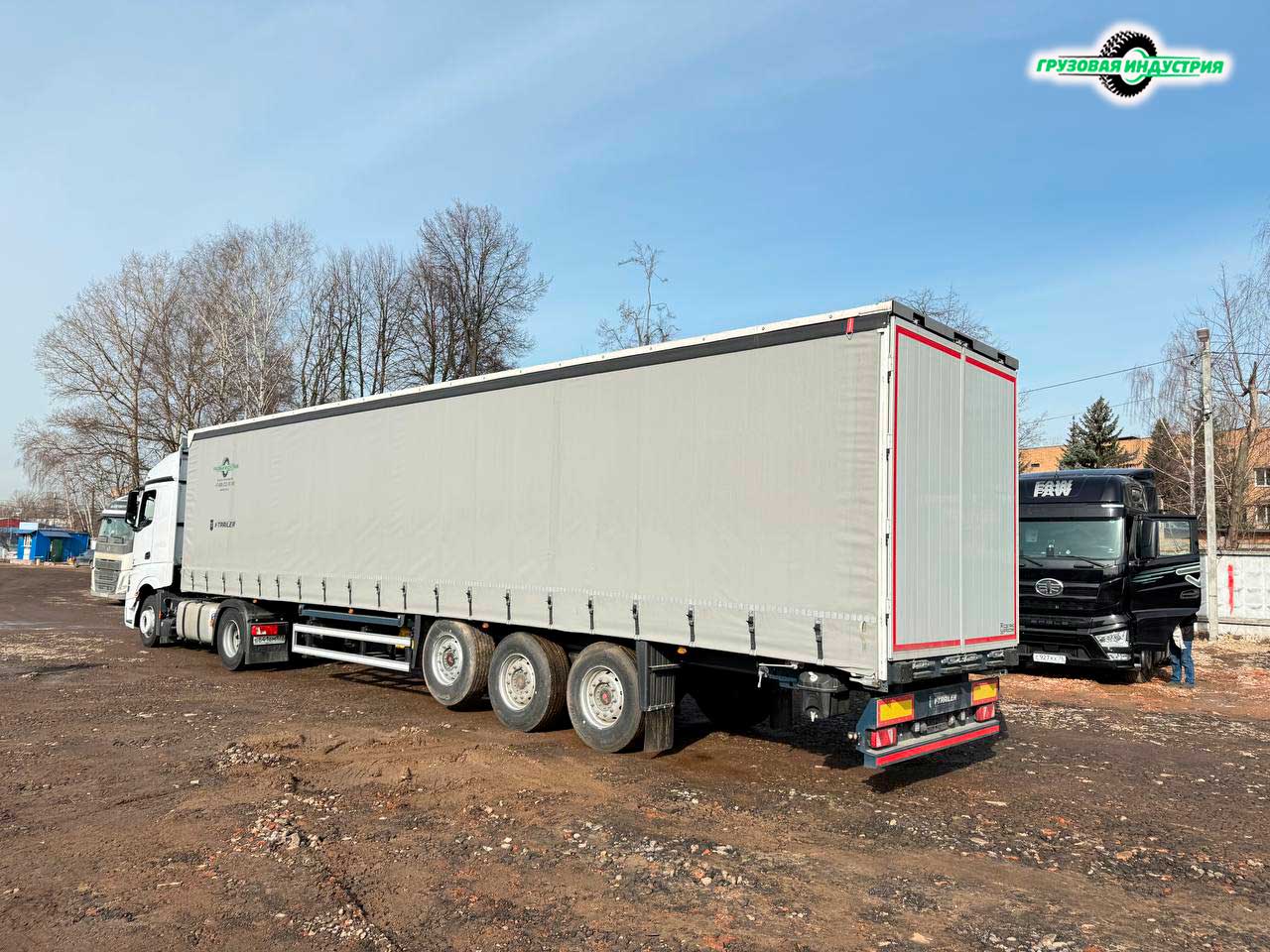 Отгрузка сцепки Mercedes 4x2 и тентованного полуприцепа V-trailer 329 в г. Москва.